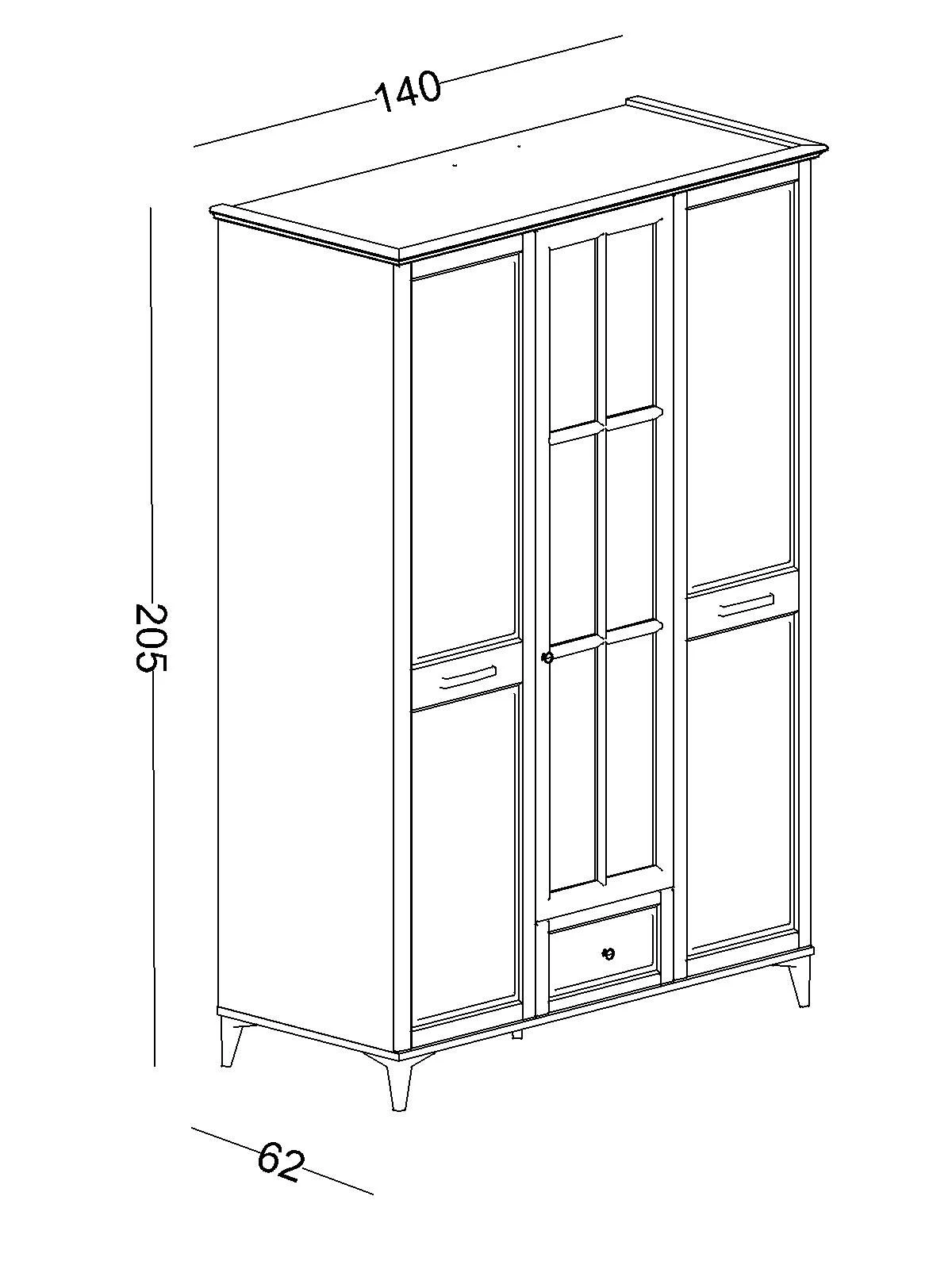 Dimensions 140 × 205 × 62 cm