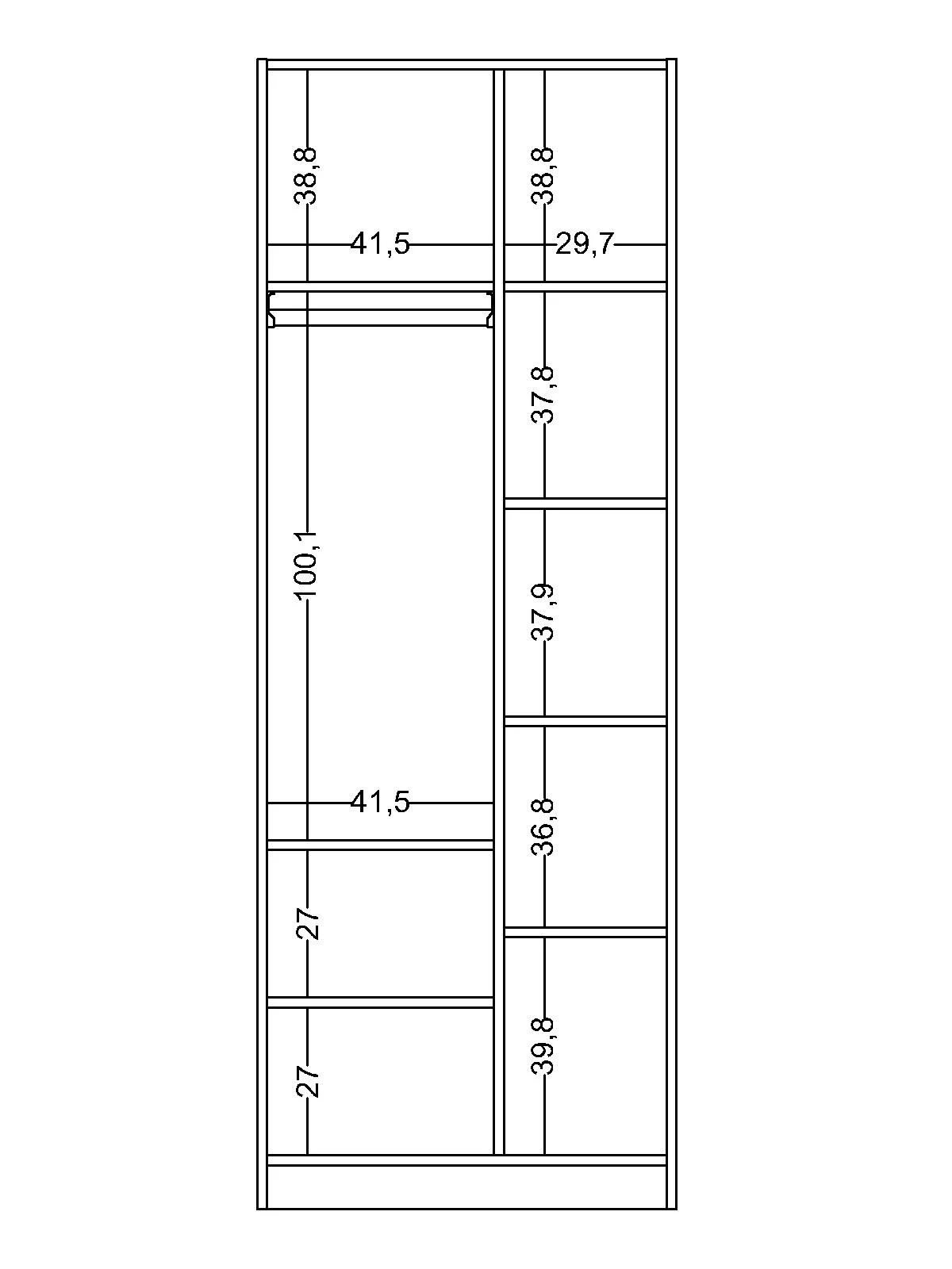 LARGEUR : 77 CM PROFONDEUR : 60 CM HAUTEUR : 210 CM