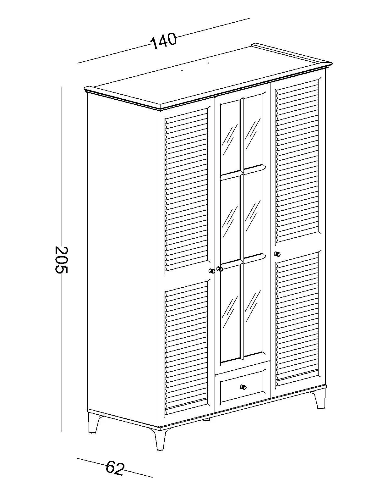 Dimensions 140 × 205 × 62 cm