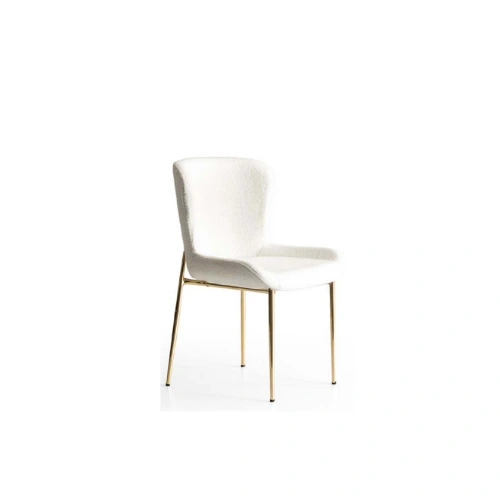Raffinée, sobre et résolument élégante, la chaise AYA s’impose comme un incontournable des intérieurs contemporains. Avec son revêtement en tissu bouclé blanc et sa structure fine dorée, elle incarne un design épuré et luxueux à la fois.
