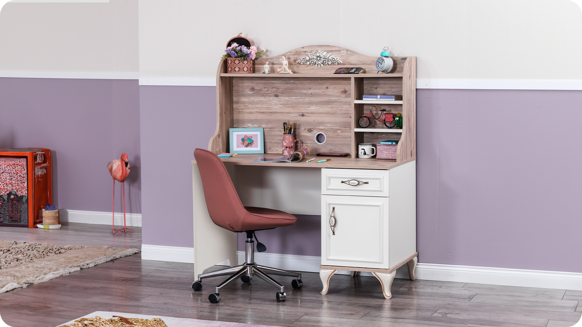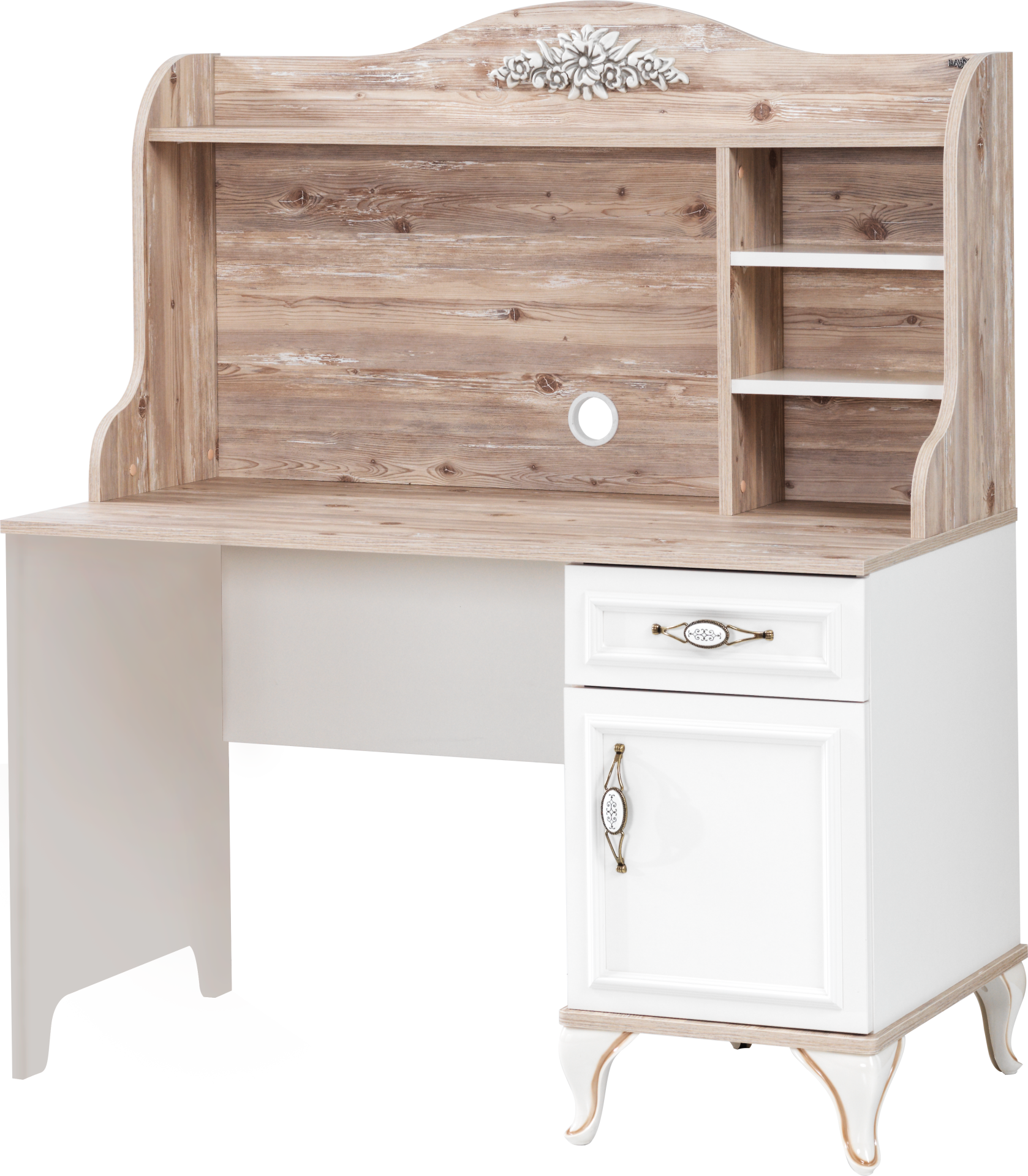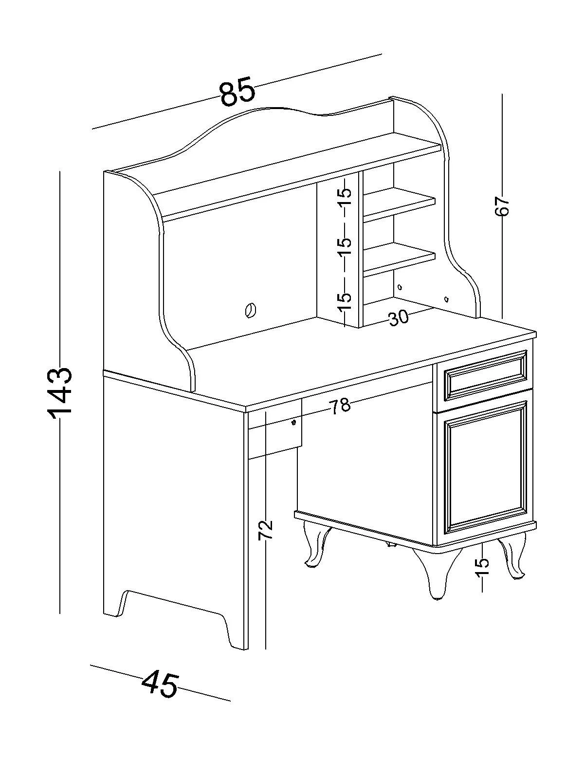 * Tablettes inférieures et supérieures de l’unité qui donnent au bureau un aspect bien rangé.