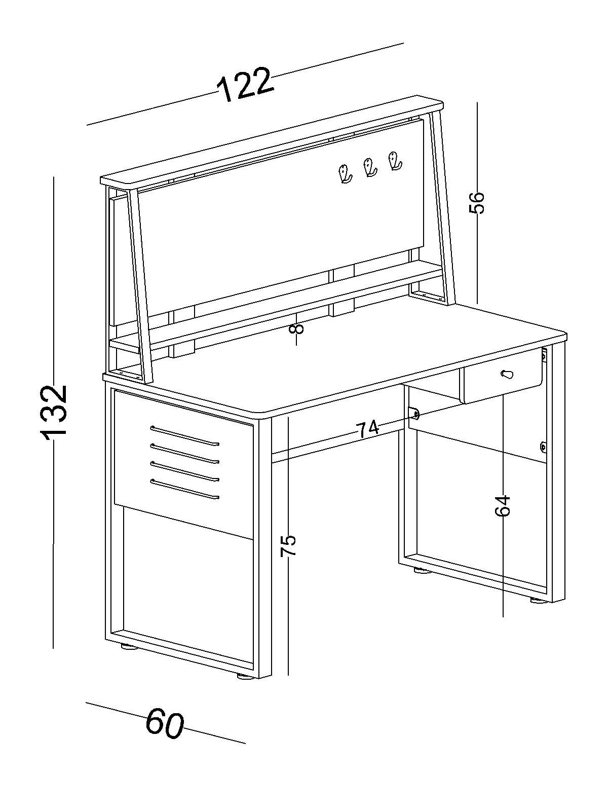 * Tablettes inférieures et supérieures de l’unité qui donnent au bureau un aspect bien rangé.