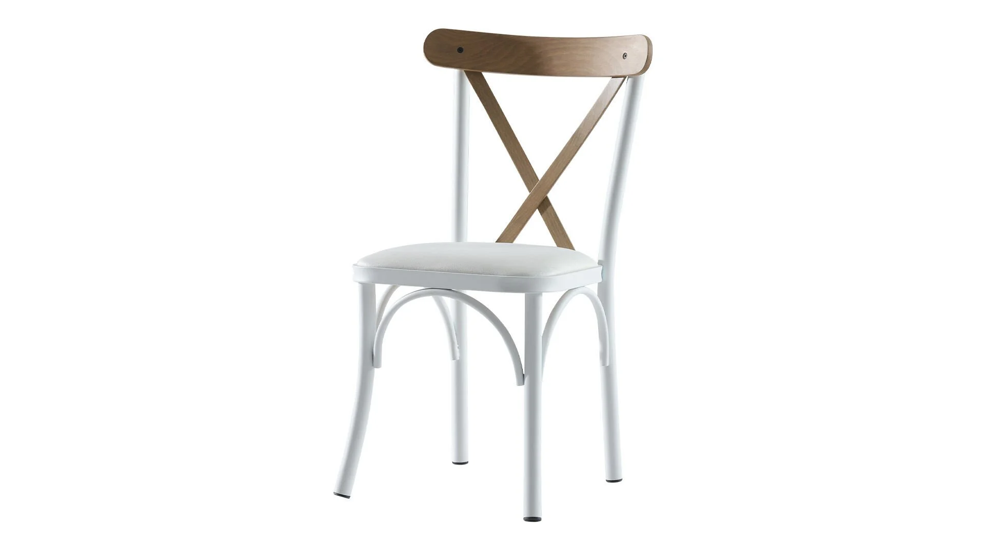 La couleur du produit peut varier de ± 1 ton. LARGEUR 45 CM PROFONDEUR 48 CM HAUTEUR 87 CM – PROFONDEUR ASSISE 40 cm – LARGEUR ASSISE 45 cm – HAUTEUR DOSSIER 40 cm Informations Matériau Produit : • Housse d’assise 100% cuir polyester. • Bois peint en noyer. • Pied en métal blanc. Instructions d’utilisation et d’entretien : • La chaise ne doit pas être utilisée comme échelle ou pour transporter des objets dans la maison. • Les vis, écrous et points de connexion des roues doivent être vérifiés à intervalles périodiques. • En cas de dommages ou d’usure des pièces du produit, des pièces de rechange non approuvées par l’usine ne doivent pas être utilisées à la place de la pièce concernée. • L’eau de Javel, les produits chimiques de blanchiment et les brosses métalliques ne doivent pas être utilisés pendant le nettoyage. • Toutes les taches qui pourraient apparaître doivent être traitées immédiatement.