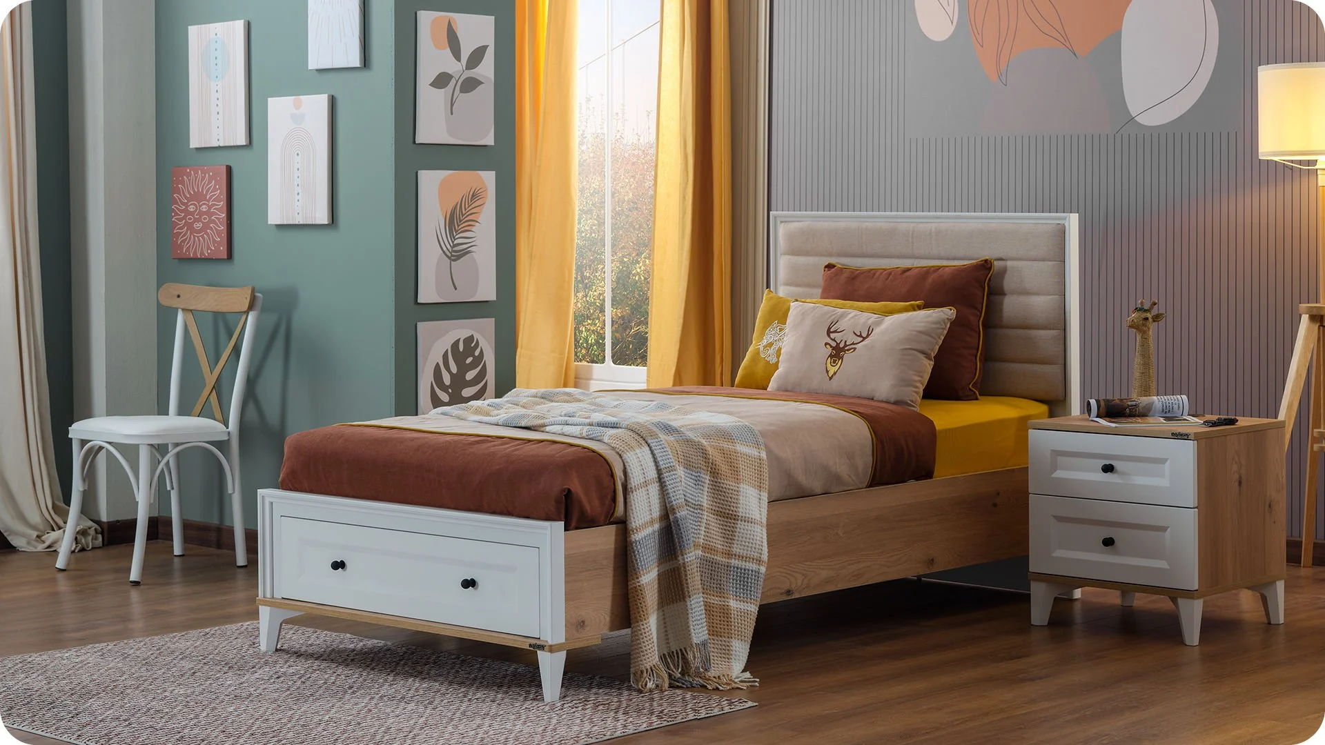 * Tiroir très fonctionnel au pied du lit qui permet de placer facilement différents objets.