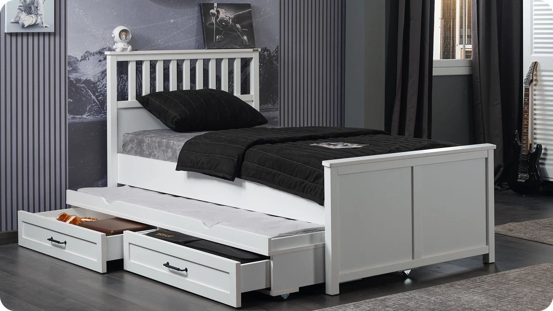* Possibilité d’être déplacé à l’emplacement souhaité grâce à la fonction de roulettes sous le lit.