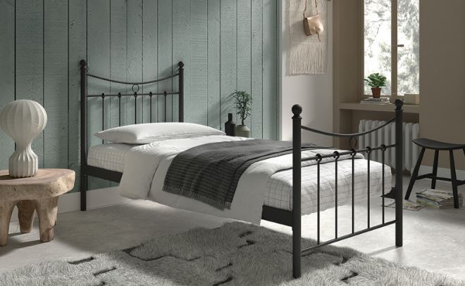 Lit « Sacha » Blanc/Noir 90X200 Avec Sommier