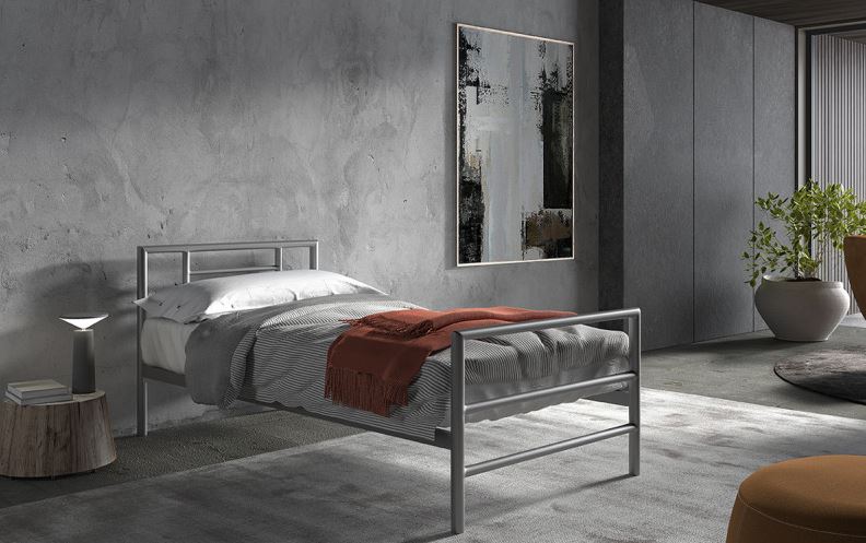 Lit « Sandro » Gris 90X200 Avec Sommier à Lattes