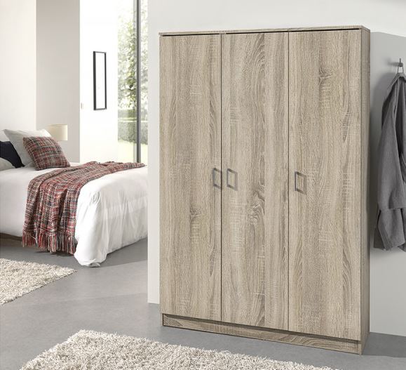 Meuble de Rangemeny « Ray » 3 Portes et 4 Étagères Blanc/Sonoma/Chêne Gris