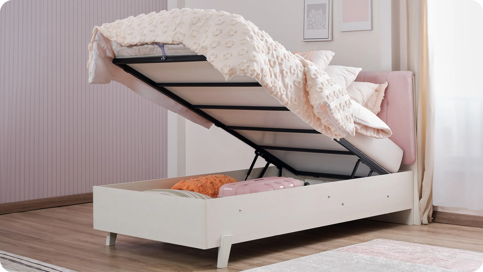 * Il peut être utilisé pendant de nombreuses années avec un espace de rangement, des amortisseurs verrouillés de sécurité, une capacité de charge maximale de 130 kg, un lit intérieur de 100 x 200 cm.