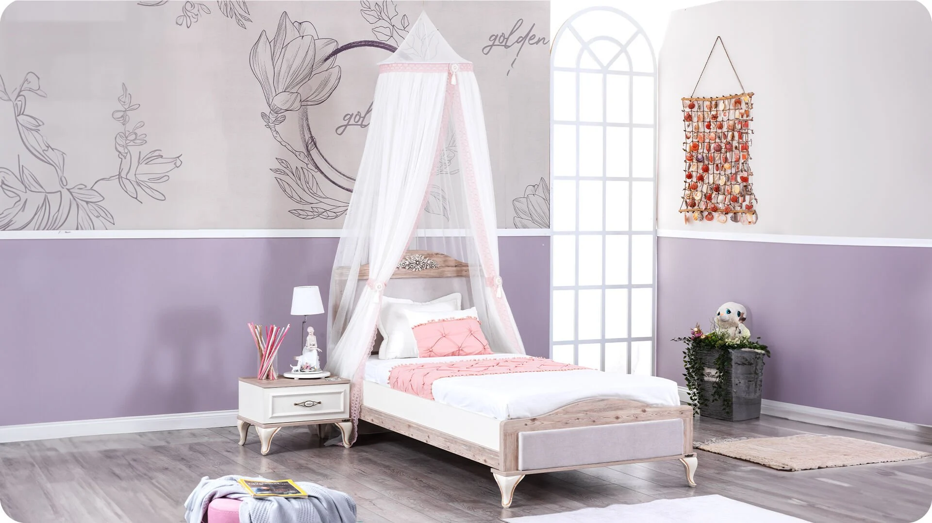 * Tête et pied de lit en tissu lavable et matériaux doux.