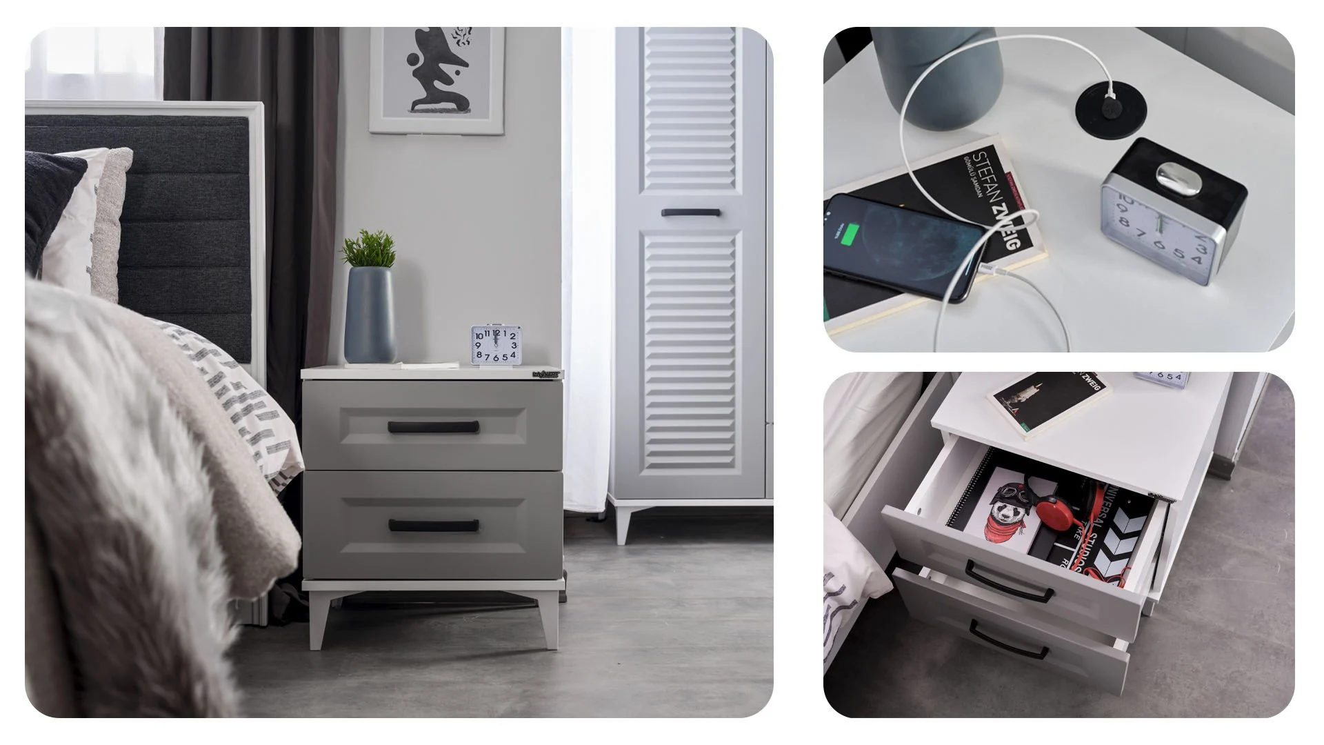 * Il dispose de deux tiroirs avec un grand volume interne.
