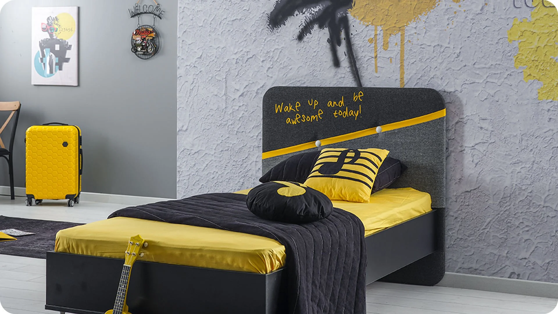 * Poche sur la tête de lit où peuvent être placés des objets personnels .